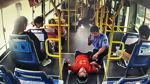 8月2日,市公交公司駕駛員王強(qiáng)像往常一樣,駕駛著6路公交車行駛在線路上,當(dāng)車行駛到天貿(mào)城站時(shí),一男子突然倒在車內(nèi),王強(qiáng)見狀立即將車緩慢停靠在站牌旁,向暈倒男子方向跑去,一邊安撫他防止其睡著,一邊撥打120急救電話。這就出現(xiàn)了文章開頭的一幕。